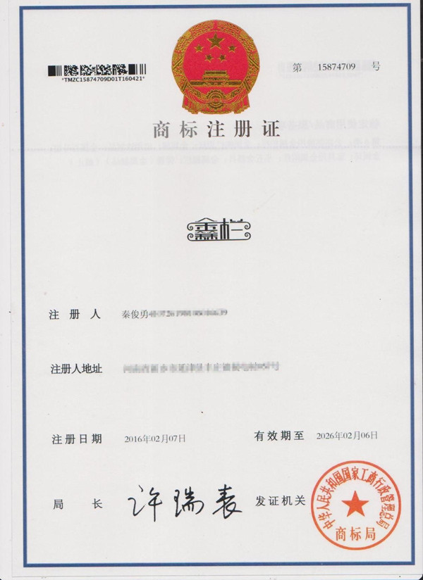 恭喜!新鄉(xiāng)鑫欄護(hù)欄廠商標(biāo)證書成功注冊(cè)下來(lái)!
